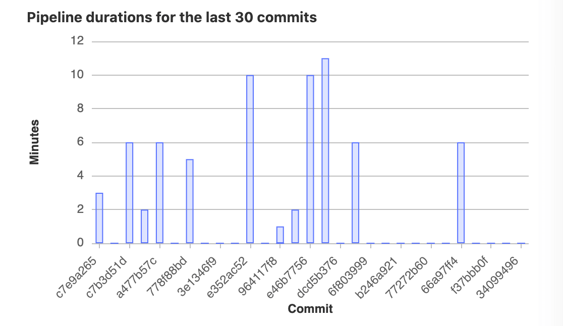 CI/CD Analytics shows the history of your pipeline successes and failures, as well as how long each pipeline ran.