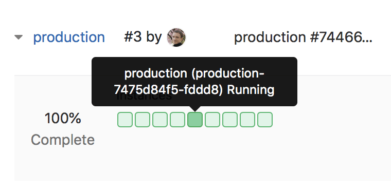 . - On the Environments page, you should see the status of the environment's pods with deploy boards.
