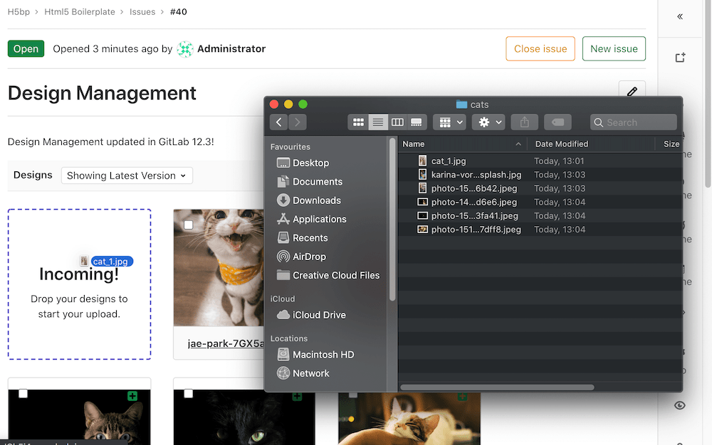 You can also copy images from your file system and paste them directly on the GitLab Design page as a new design.