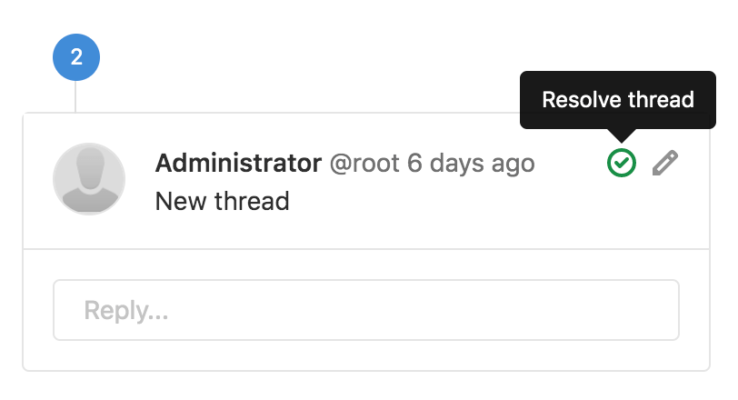 You can mark a thread as resolved or unresolved by selecting the checkmark icon for Resolve thread in the top-right corner of the first comment of the discussion: