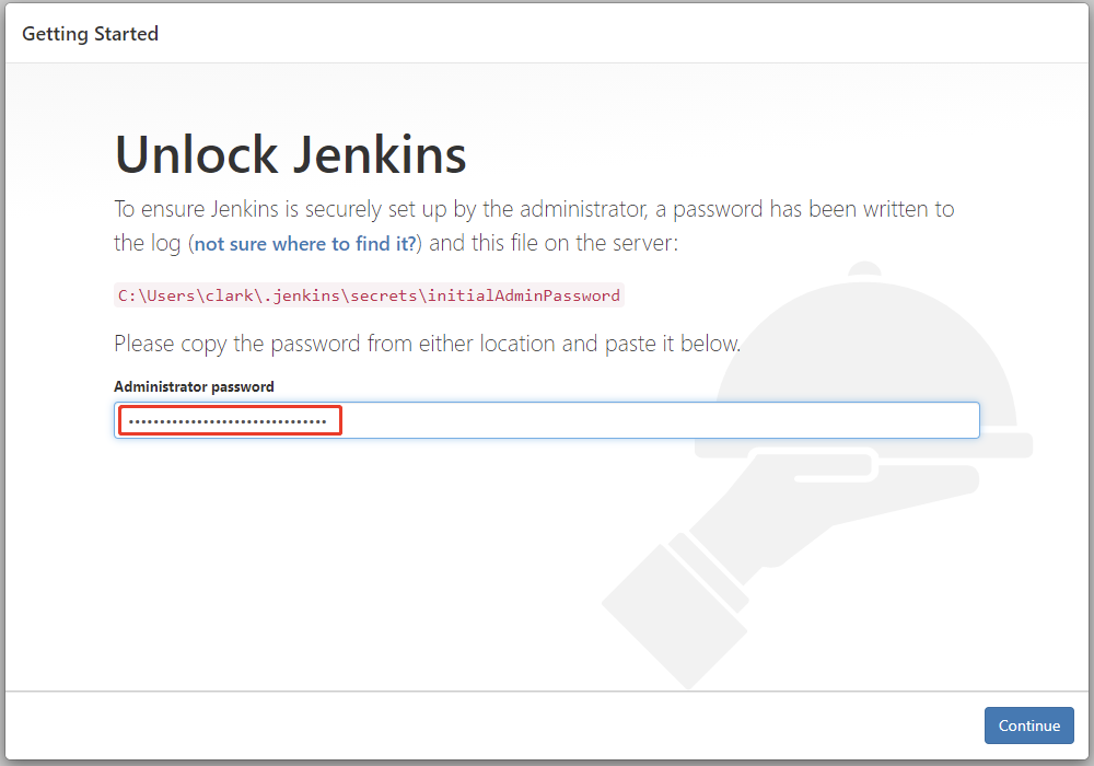 Copy it and open a browser to login to default address http://localhost:8080. Past the default password and unlock Jenkins: