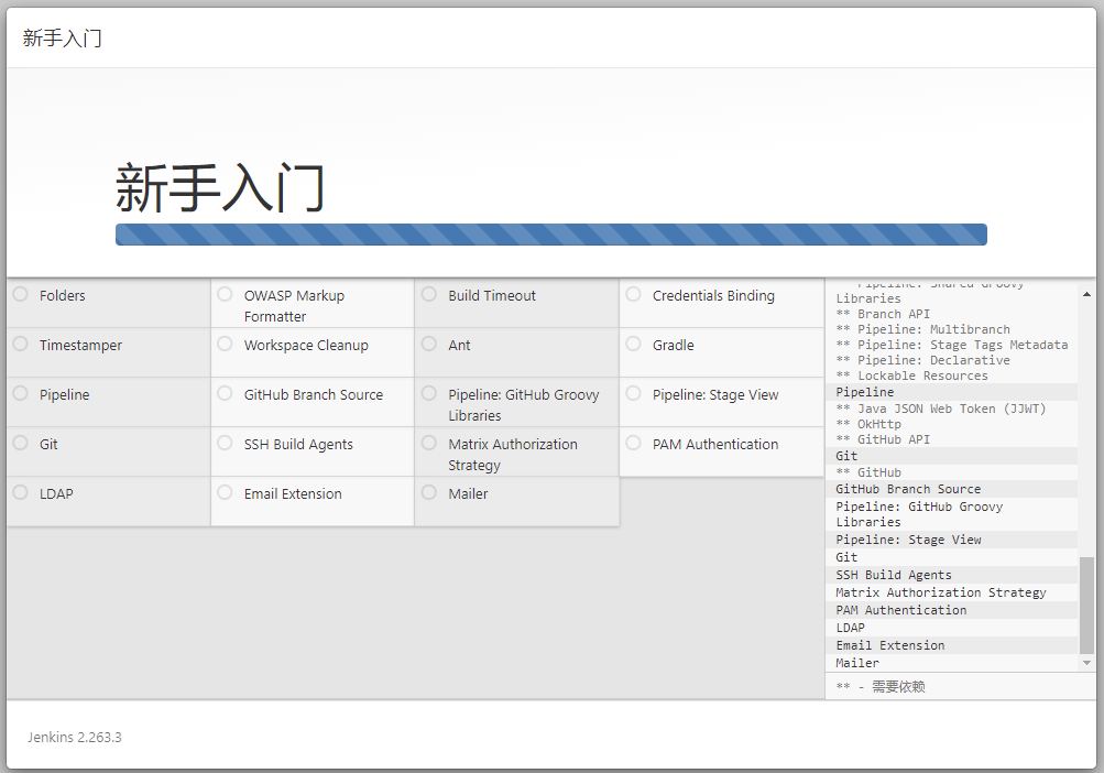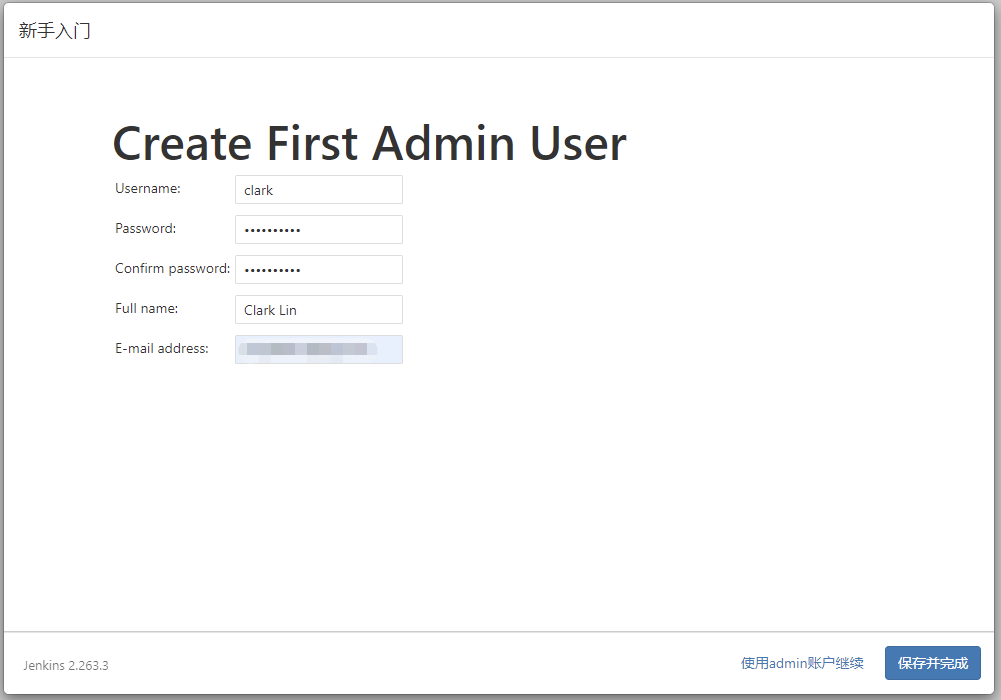 Either install recommended Jenkins plugins, or manually choose required plugins. Here we choose recommended plugins, and wait for all plugin installed: