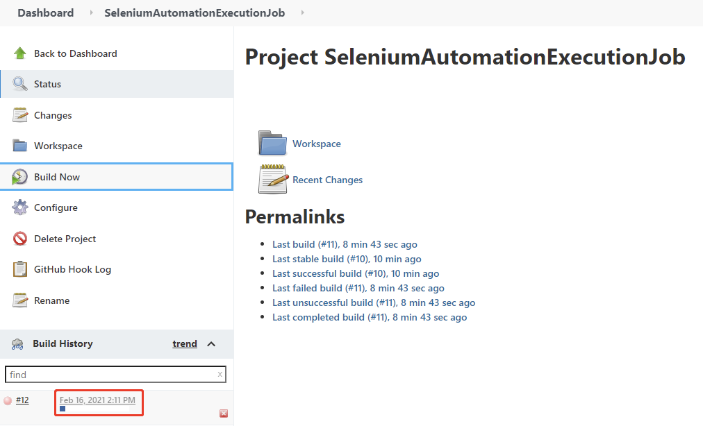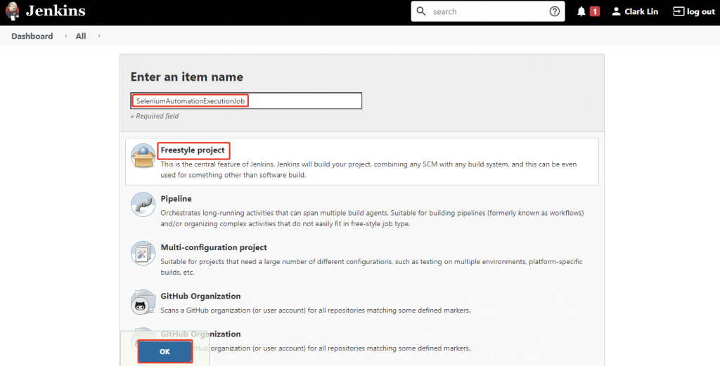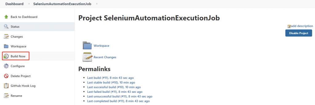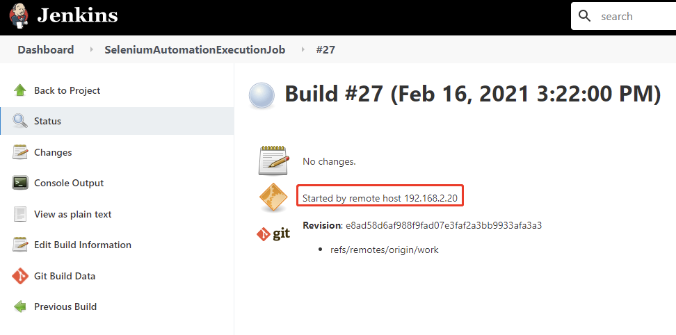 curl -u clark:<User API Token> localhost:8080/job/SeleniumAutomationExecutionJob/build?token=<Jenkins Job Token>